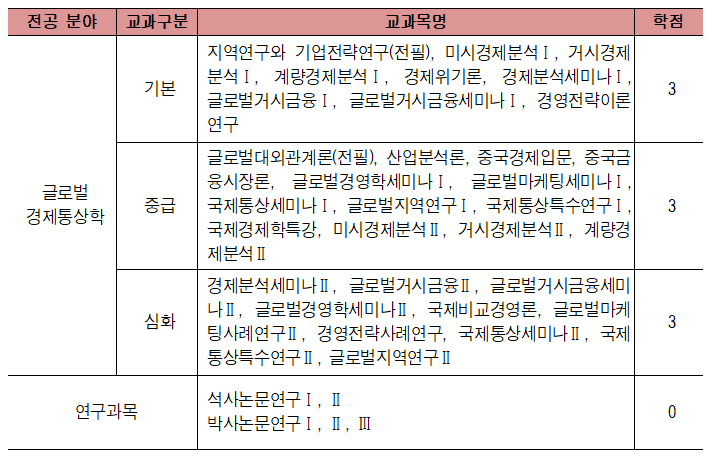 - 국제통상특수연구Ⅰ (Special Topics in International CommerceⅠ)3학점